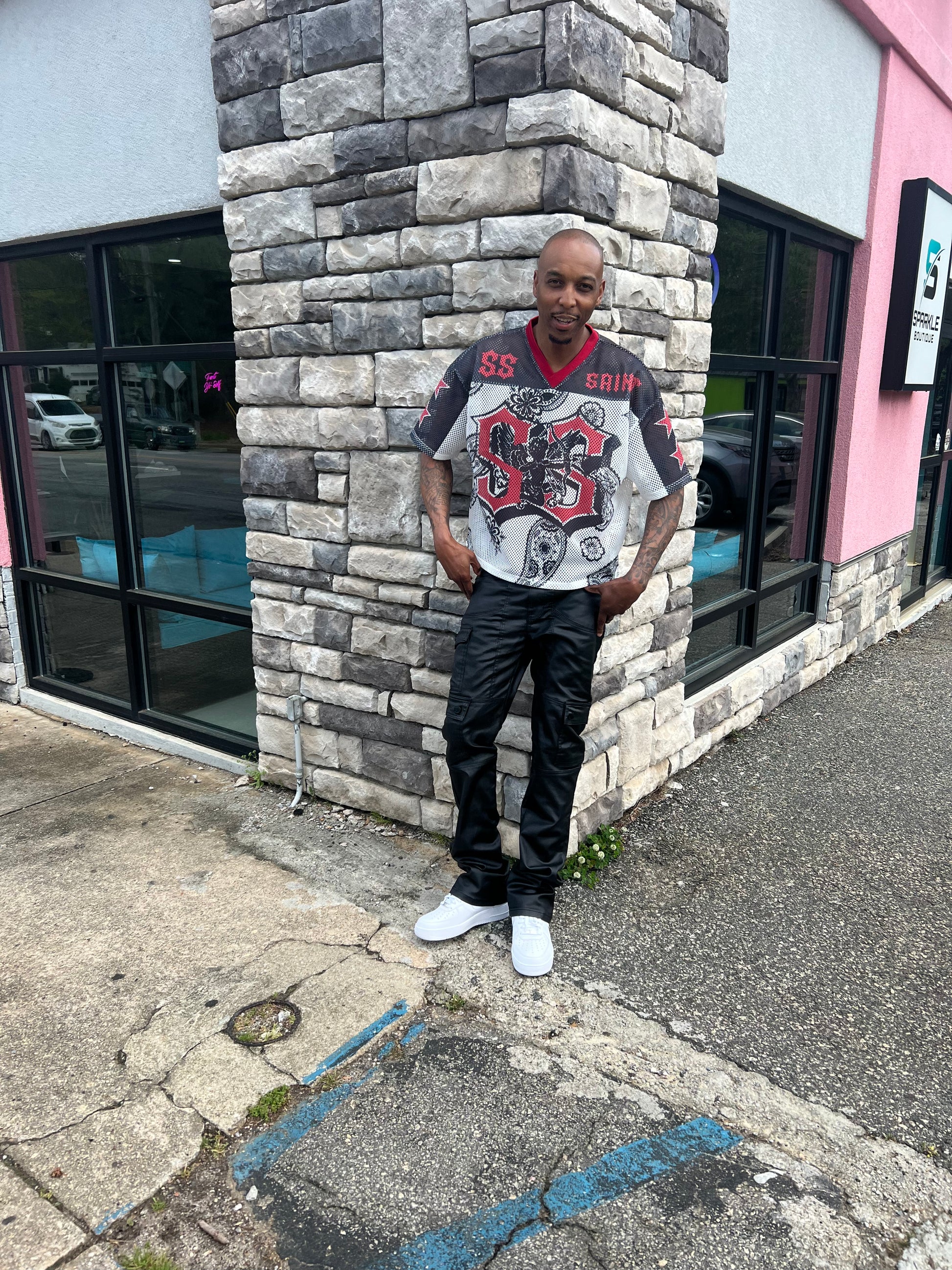 Leather Black Stacked Jeans